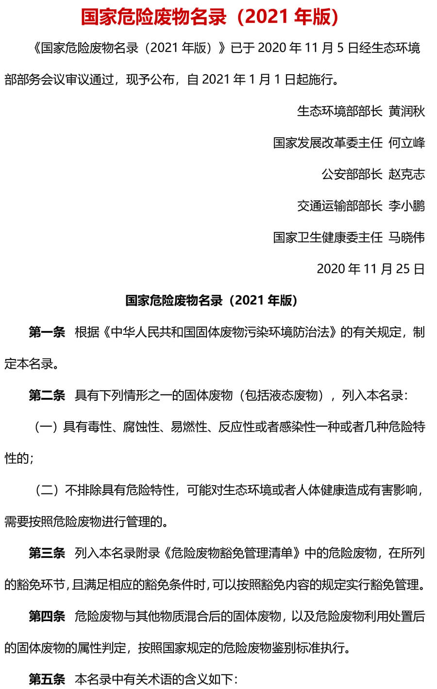 2021版國(guó)家危險(xiǎn)廢物名錄(1月1日實(shí)施)