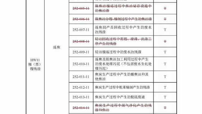 4.修改煤焦化相關(guān)危險(xiǎn)廢物的規(guī)定。針對(duì)該類廢物重點(diǎn)從兩個(gè)方面進(jìn)行修改:一是重新梳理并明確了煤焦化過程產(chǎn)生的各類危險(xiǎn)廢物及其工藝來源;二是根據(jù)不同煤焦油的利用途徑,在《危險(xiǎn)廢物豁免管理清單》中增加當(dāng)煤焦油用于生產(chǎn)煤基氫化油、碳素材料、炭黑時(shí),滿足一定條件利用過程可不按危險(xiǎn)廢物管理的規(guī)定。