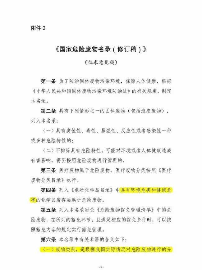 《名錄(修訂稿)》(二次征求意見稿)包括正文、附表《國(guó)家危險(xiǎn)廢物名錄》、附錄《危險(xiǎn)廢物豁免管理清單》。